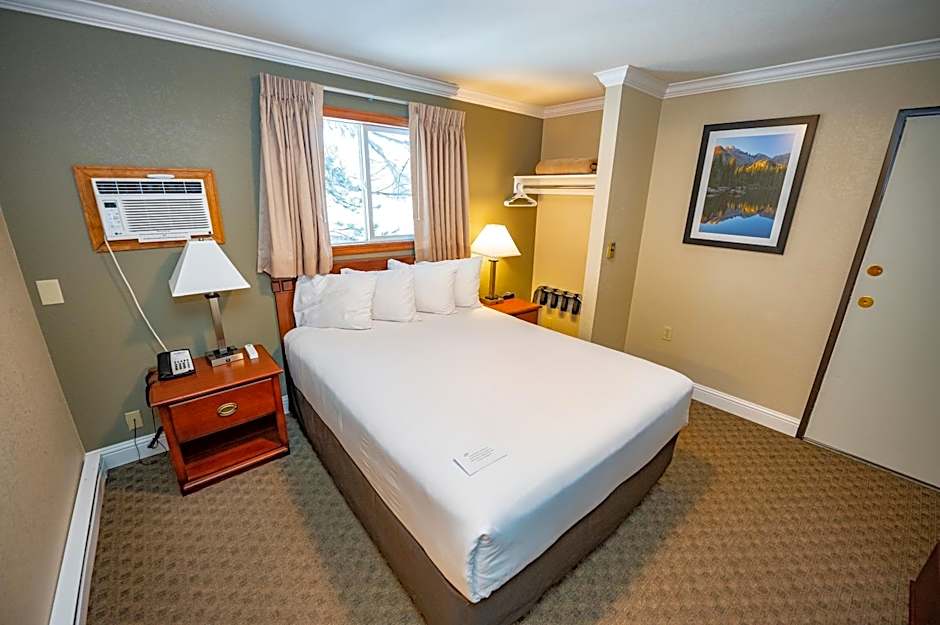 This room features mountain views, a seating area with a fireplace and a spa bath. There is also a gourmet coffee-maker, a microwave and refrigerator, as well as a private bathroom.